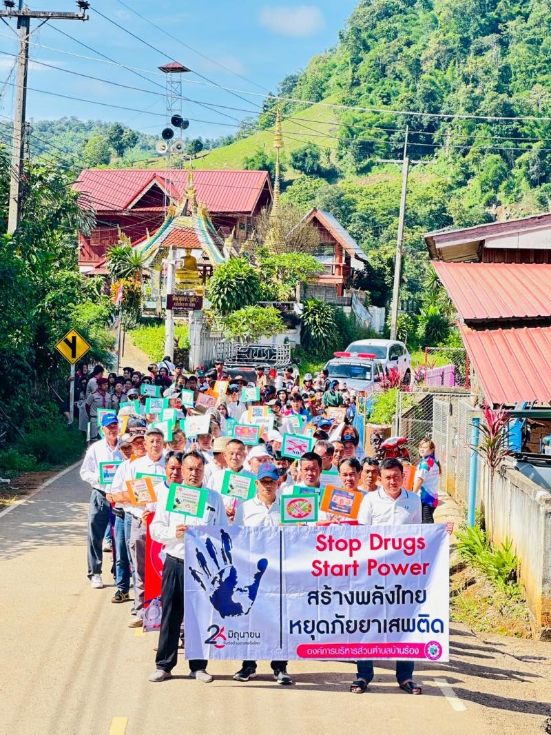 รายละเอียด : ในวันที่ ๒๖ มิถุนายน พ.ศ.๒๕๖๘ องค์การบริหารส่วนตำบลบ้านร้องได้จัดกิจกรรมการรณรงค์ประชาสัมพันธ์เพื่อสร้างการรับรู้เนื่องในวันต่อต้านยาเสพติด (๒๖ มิถุนายน) ตามโครงการป้องกันและแก้ไขปัญหายาเสพติดในชุมชน ประจำปีงบประมาณ พ.ศ.๒๕๖๘ ตั้งขบวน ณ บริเวณหน้าโรงเรียนผาแดงวิทยา หมู่ที่ ๕ ตำบลบ้านร้อง จนถึง ปากทางเข้าหมู่บ้านผาแดง โดยมีกลุ่มเป้าหมายที่เข้าร่วม คือ ผู้บริหาร อบต., ข้าราชการ, พนักงานองค์การบริหารส่วนตำบลบ้านร้อง, ผู้นำชุมชน, อาสาสมัครสาธารณสุขประจำหมู่บ้าน(อสม.), คณะครู, เด็กนักเรียน, ประชาชนทั่วไป เข้าร่วมกิจกรรมโดยพร้อมเพรียงกัน