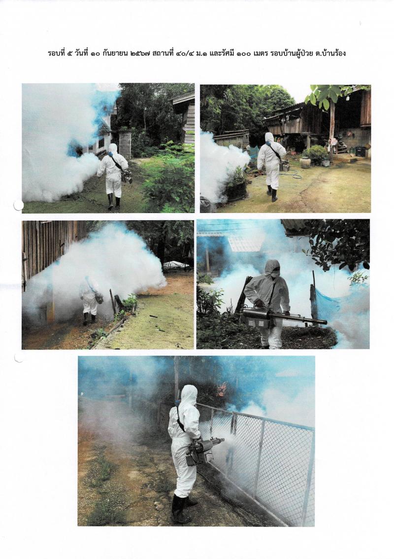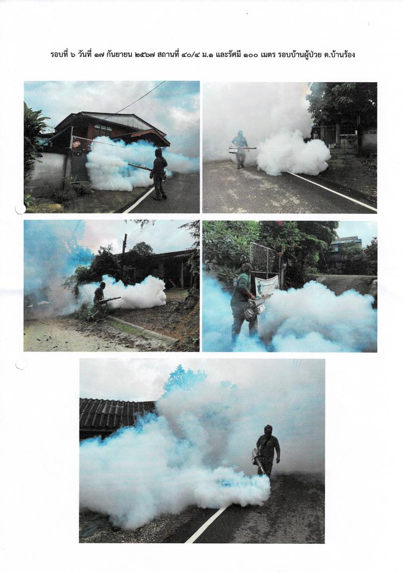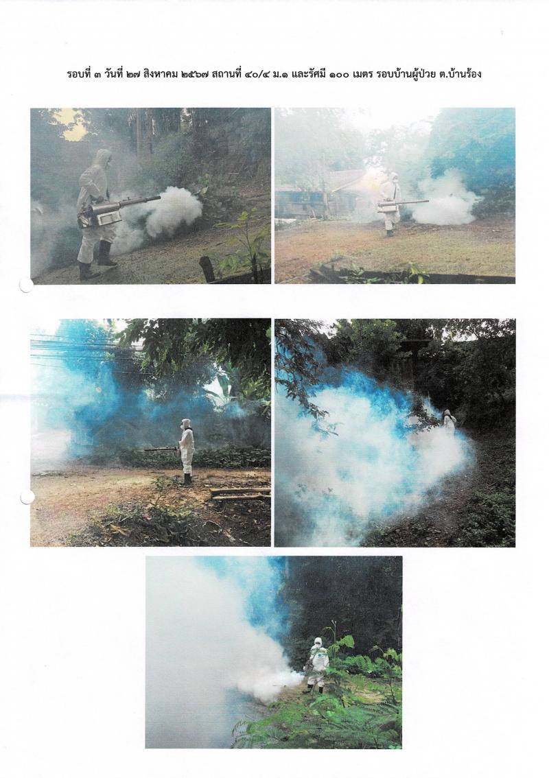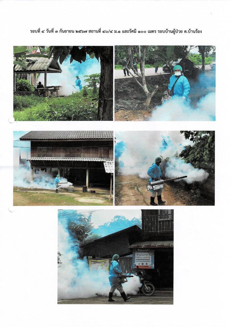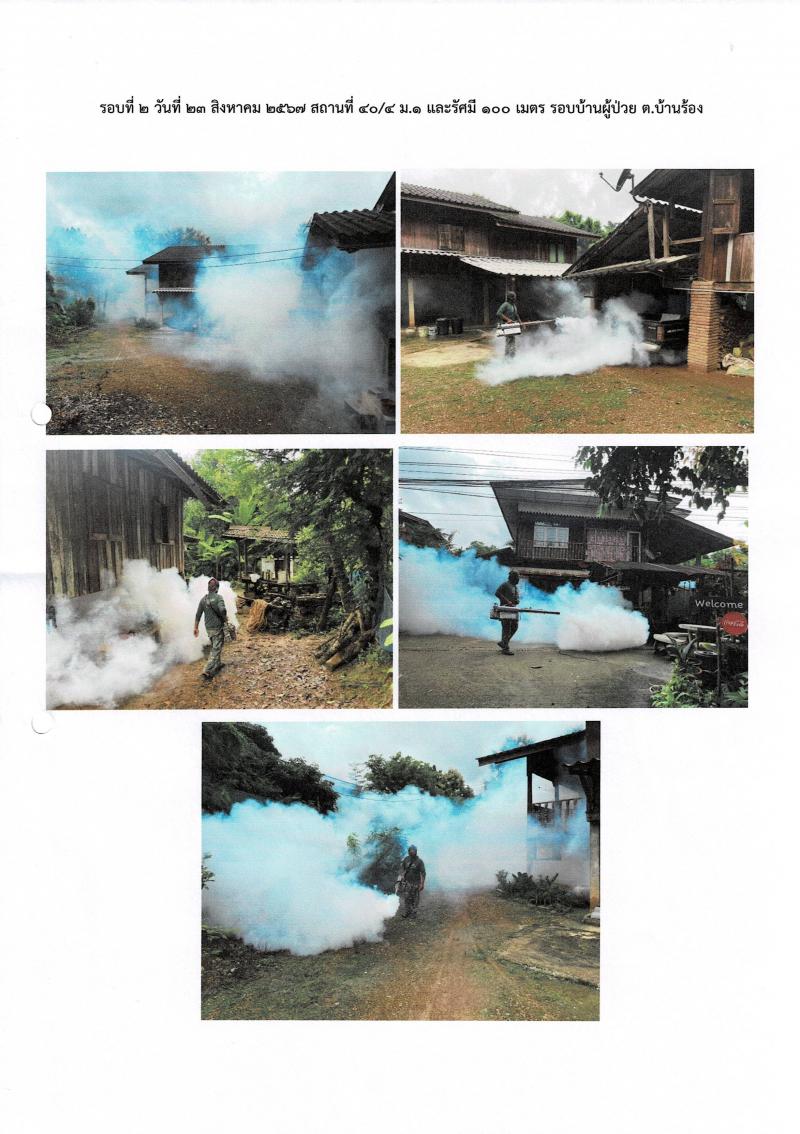 รายละเอียด : เมื่อวันที่ 20 สิงหาคม 2567 องค์การบริหารส่วนตำบลบ้านร้อง ได้ทำการควบคุมไม่ให้มีการแพร่ระบาดของโรคไข้เลือดออกให้แพร่กระจายไปยังชุมชนในพื้นที่ตำบลบ้านร้อง โดยทำการพ่นหมอกควัน (Fogging) ตามแผนการพ่นหมอกควัน จำนวน 6 ครั้ง ในรัศมีรอบบ้านผู้ป่วย 100 เมตร รอบที่ 1 วันที่ 21 สิงหาคม 2567 รอบที่ 2 วันที่ 23 สิงหาคม 2567 รอบที่ 3 วันที่ 27 สิงหาคม 2567 รอบที่ 4 วันที่ 3 กันยายน 2567 รอบที่ 5 วันที่ 10 กันยายน 2567 รอบที่ 6 วันที่ 17 กันยายน 2567 สถานที่ บ้านนาแรม หมู่ที่ 1 ตำบลบ้านร้อง