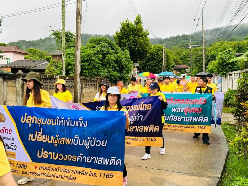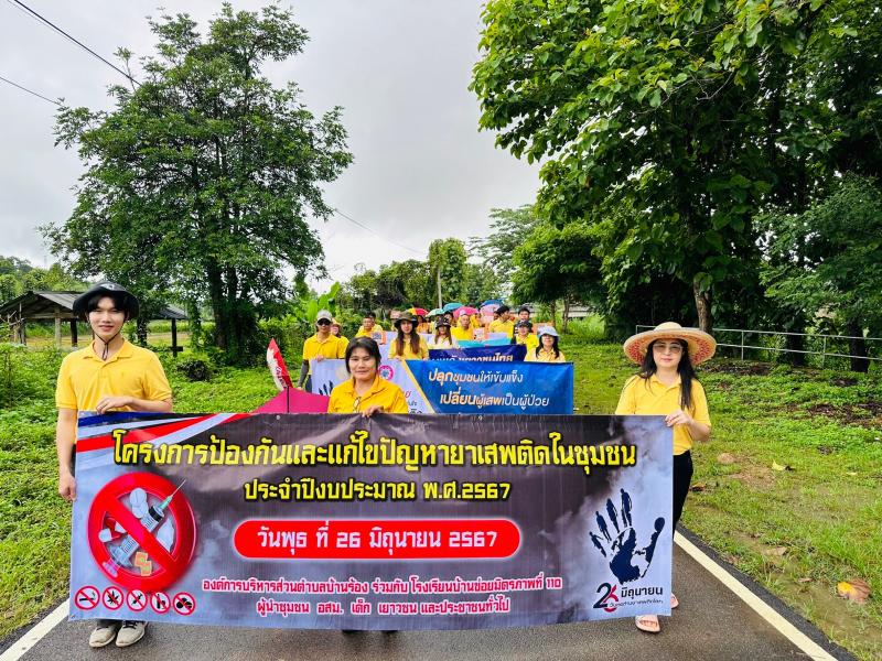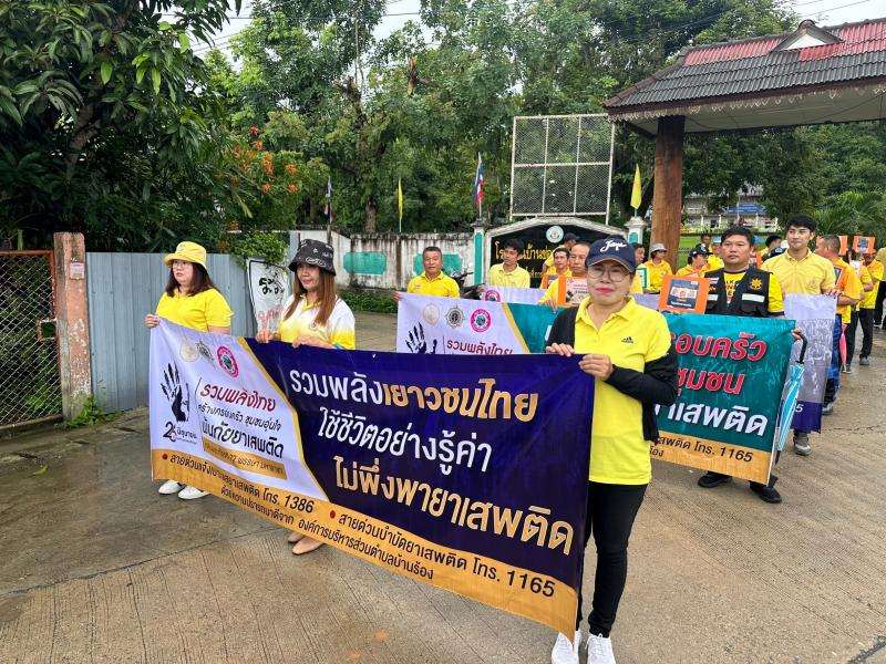 รายละเอียด : ในวันที่ ๒๖ มิถุนายน พ.ศ.๒๕๖๗ องค์การบริหารส่วนตำบลบ้านร้องได้จัดกิจกรรมการรณรงค์ประชาสัมพันธ์เพื่อสร้างการรับรู้เนื่องในวันต่อต้านยาเสพติด (๒๖ มิถุนายน) ตามโครงการป้องกันและแก้ไขปัญหายาเสพติดในชุมชน ประจำปีงบประมาณ พ.ศ.๒๕๖๗ ตั้งขบวน ณ สนามโรงเรียนบ้านข่อยมิตรภาพที่ ๑๑๐ ตำบลบ้านร้อง จนถึง ศาลาประชาคมหมู่ ๙ บ้านท่าเจริญ ต.บ้านร้อง โดยมีกลุ่มเป้าหมายที่เข้าร่วม คือ ผู้บริหาร /ข้าราชการ /พนักงานองค์การบริหารส่วนตำบลบ้านร้อง,ผู้นำชุมชน, อาสาสมัครสาธารณสุขประจำหมู่บ้าน (อสม.) ,เด็กนักเรียน ,ประชาชนทั่วไป เข้าร่วมกิจกรรมโดยพร้อมเพรียงกัน