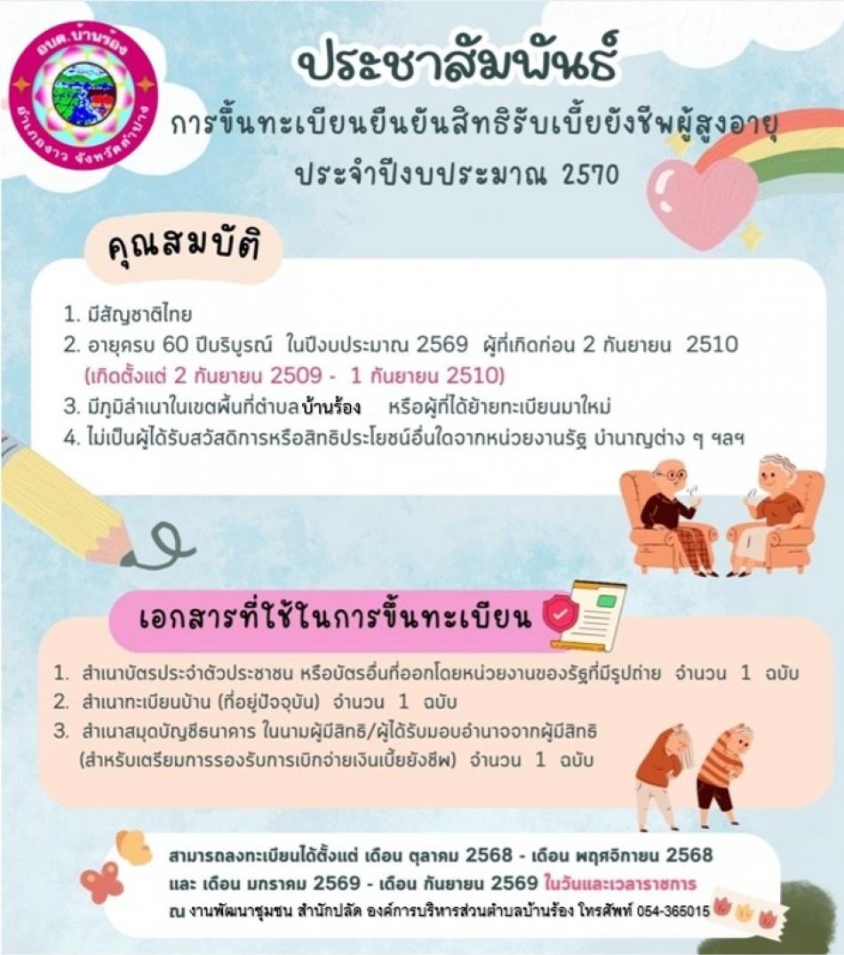 ประชาสัมพันธ์การขึ้นทะเบียนยืนยันสิทธิรับเบี้ยยังชีพผู้สูงอายุ